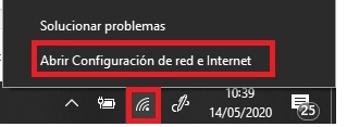 Una conexión activa a través de WLAN es un requisito previo para mostrar la contraseña de WLAN. Haz clic en el icono de WiFi en la esquina inferior derecha de la barra de tareas para mostrar todas las conexiones de red activas. Luego selecciona la opción "Configuración de red e Internet".