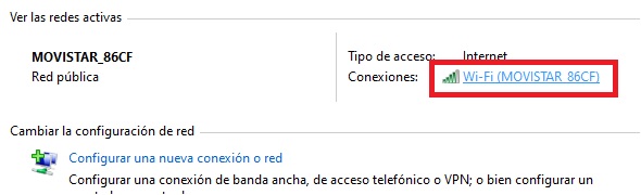 El Centro de redes y recursos compartidos muestra todas las conexiones que tiene tu computadora en este momento, incluida la red WiFi utilizada actualmente. Con cada conexión hay un pequeño texto azul. Encuentra la conexión WiFi y haz clic en ella.