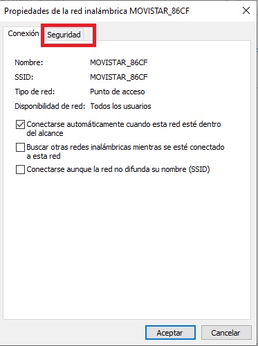 Y cambia a la pestaña "Seguridad" en el siguiente cuadro de diálogo.